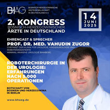 Ponekad neki jubilej koji na izgled nekome je mozda vremenski mali, on iza sebe nosi veliku evoluciju u radu, ostavljajuci za sobom dubok trag i temelje na kojima se gradi hirurska buducnost i robotika. Upravo se navrsava 5 godina robotske urologije u Bambergu cemu je najzasluzniji vizionarski pristup naseg Banjalucanina, prof. dr. med. Vahudin Zugora